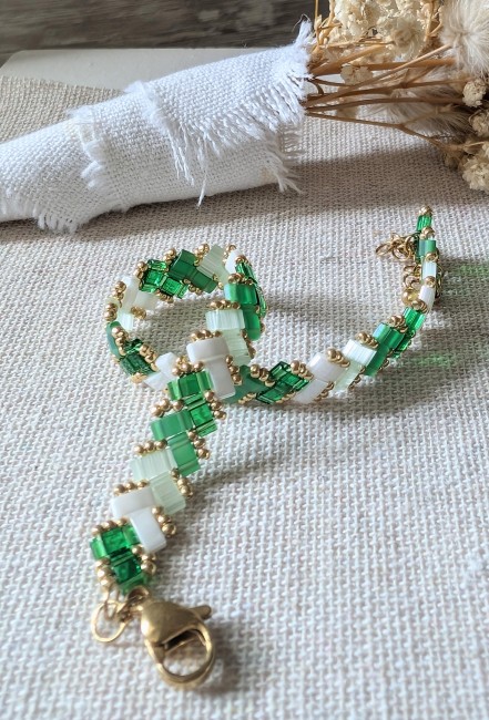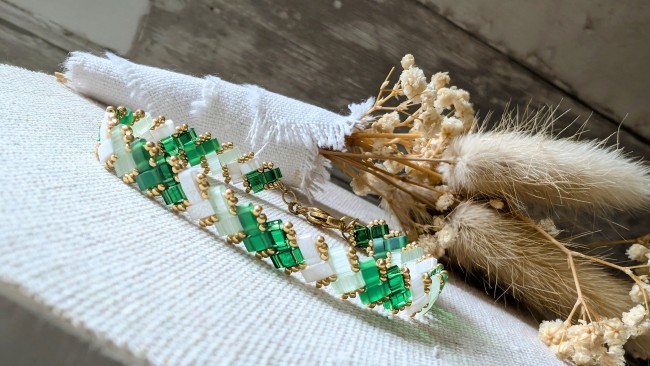 Bracelet fin réalisé à la main avec des perles en verre.