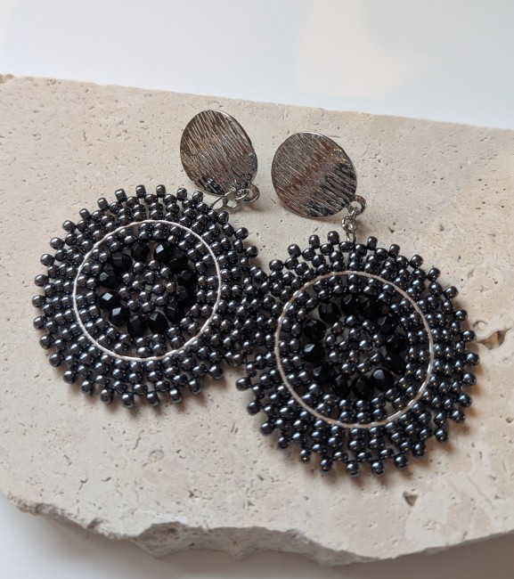 Les boucles d'oreilles Mayas sont tissées à la main avec des perles de rocailles. Elles sont très légères.
