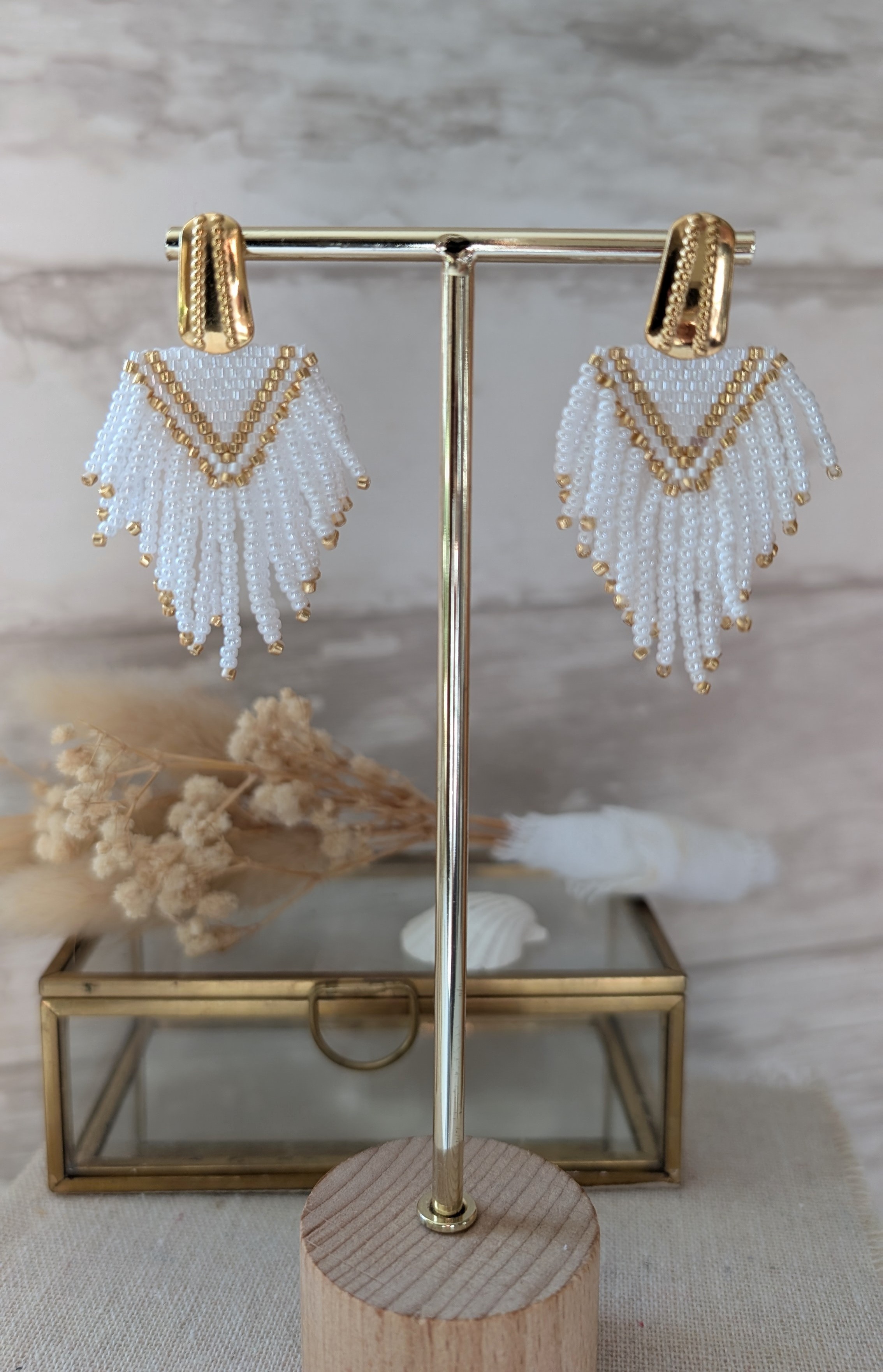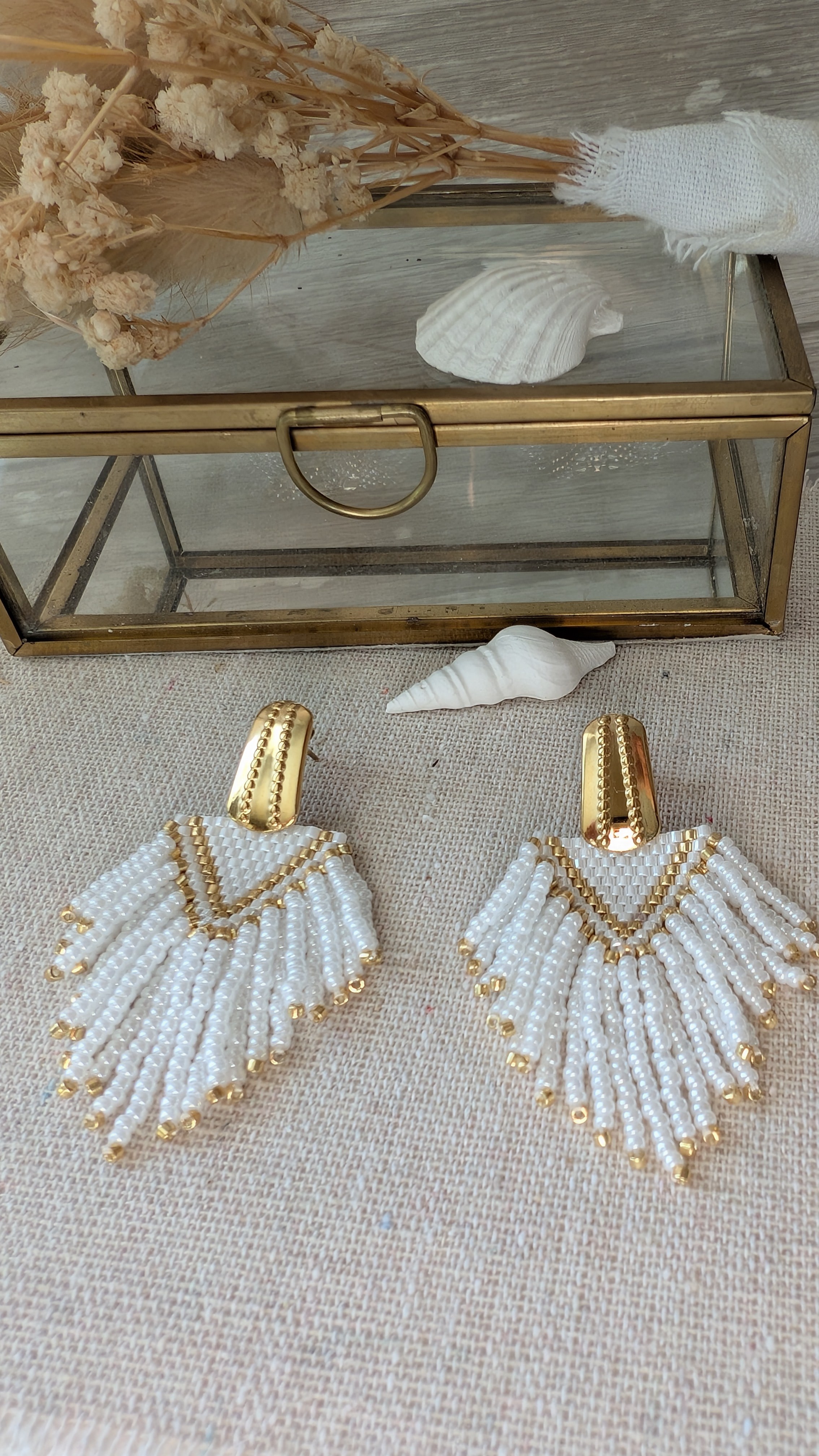 Des boucles élégantes et singulières qui incarnent design contemporain et inspiration éthniques avec ses courtes franges.